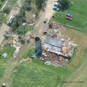 Fort Atkinson was littered with debris from trees, farm sheds, and grain bins following the city’s six twisters. Roughly 20 homes, along with some businesses, reported minor damage.