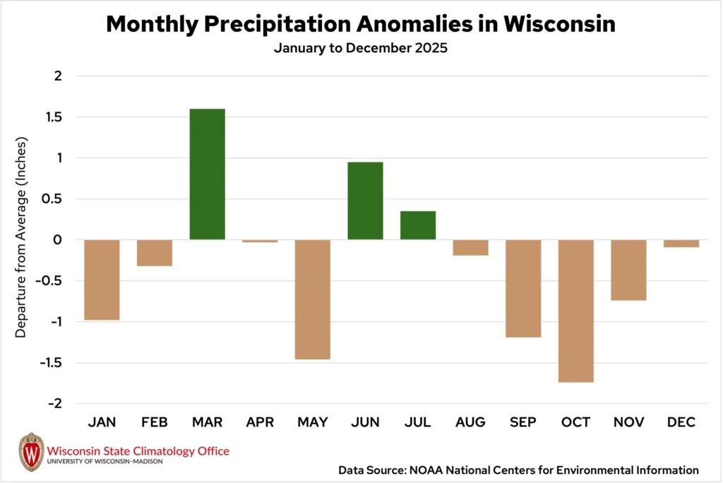 For a more detailed look at standout events of the year, check out our list of Wisconsin’s top 10 weather and climate events of 2025. For more information on each month and season, visit our Climate Summaries page.