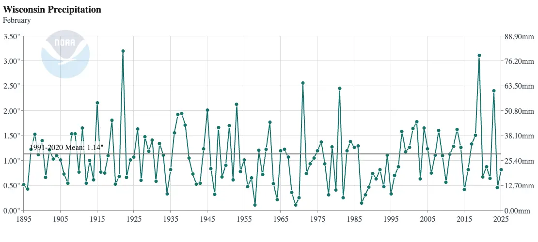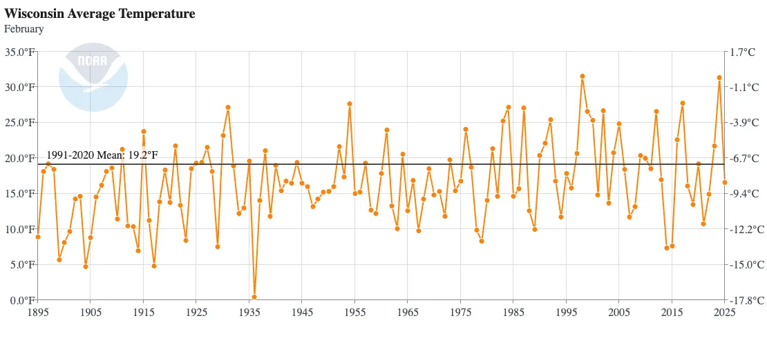 However, many Februarys in recent decades have been much warmer than average in Wisconsin.
