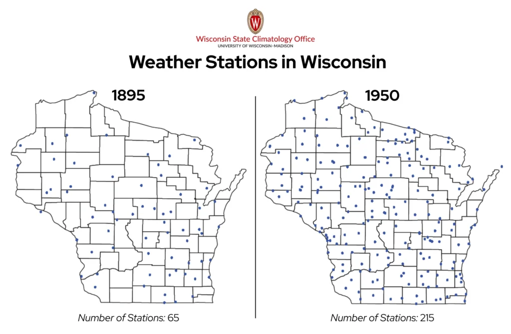 Reliable, consistent documentation of Wisconsin’s weather began in 1895. These records often came from dedicated weather observers along with the National Weather Service. As more observers volunteered, airports were built, and the Weather Service expanded, the observation network grew.