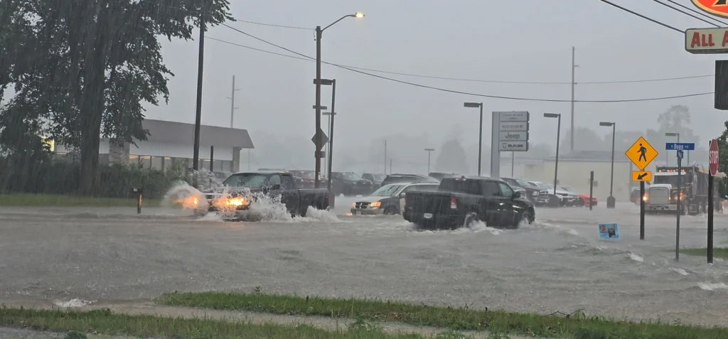 On July 16, a complex of storms poured two to four inches of rain from Waushara County to Manitowoc County. After nearly five inches of rain fell in Wautoma (Waushara County), emergency managers reported water over the hoods of cars on Main Street, requiring passengers to be rescued by boat. Street flooding was also reported in Neenah (Winnebago County), Manitowoc (Manitowoc County), Plymouth (Sheboygan County), and Fond du Lac (Fond du Lac County) (Image 2). The highest rain total reported from the event was 5.57 inches in Two Rivers (Manitowoc County), which all fell within four hours.