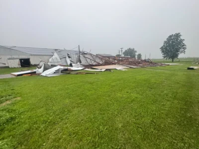 Two additional tornadoes moved through Oconto County, near Gillett and the city of Oconto. A tornado was also seen near Northland in Waupaca County. Wind gusts of 50 to 60 miles per hour from Marathon to Door County created a path of damage, downing dozens of trees and powerlines, and collapsing one pole barn (Image 4). The National Weather Service later confirmed evidence of a brief tornado touched down over a corn field near Clintonville (Waupaca County). Due to a lack of damage, the precise strength of the tornado could not be determined, and it was designated an EF-Unknown.