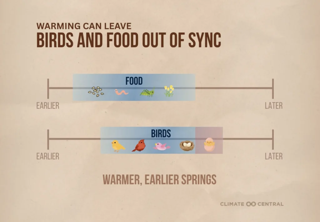 Also, as growing zones change, the location and types of food sources available change with them, leading to phenological mismatches.