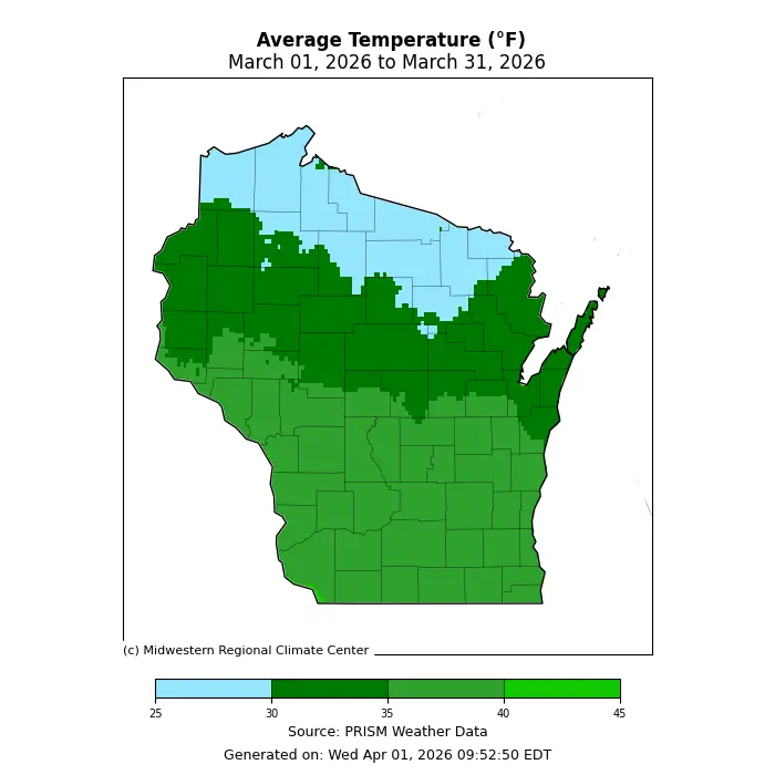 The coldest readings of the month dropped to 16 degrees below zero, reported in Couderay (Sawyer County) on March 17 and Clam Lake (Bayfield County) on March 18.