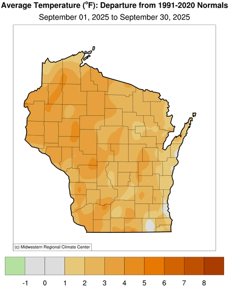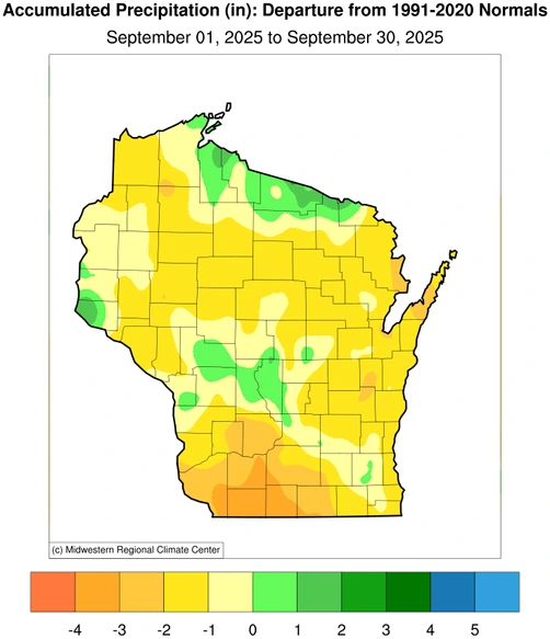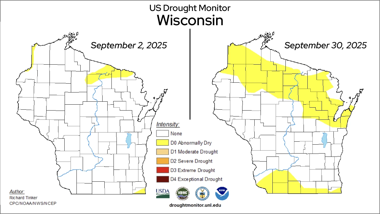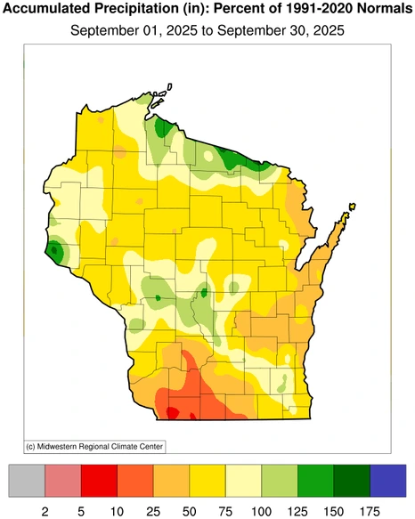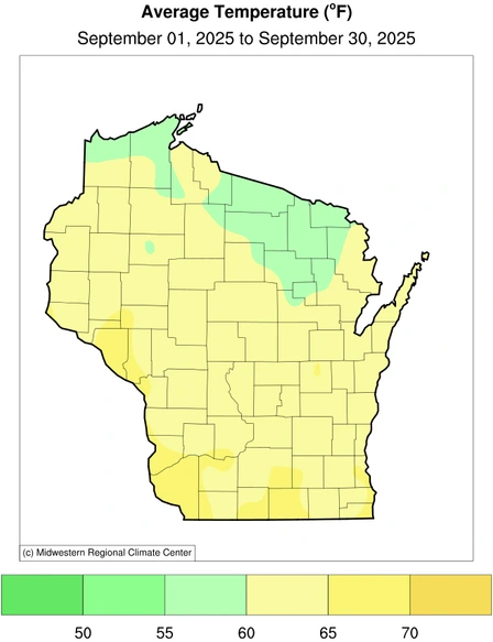 Crisp, fall-like temperatures gave way to summer-like warmth, scattered rainfall did little to ease expanding dry conditions, and harvest activity picked up, all leaving their mark on September in Wisconsin.