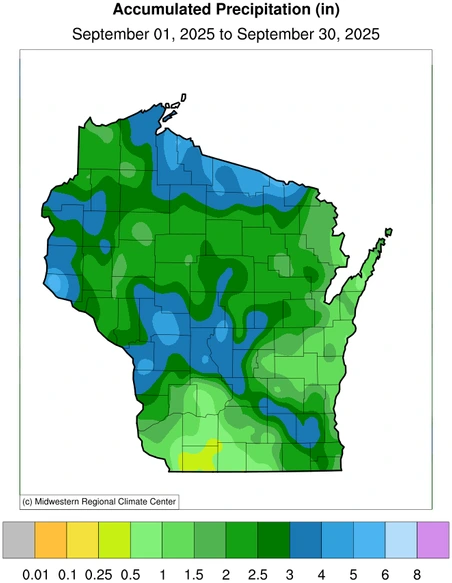 Back-to-back systems on September 19 and 20 poured one to two inches of rain across the central and southern parts of the state, while northern Wisconsin was left with less than a half inch.