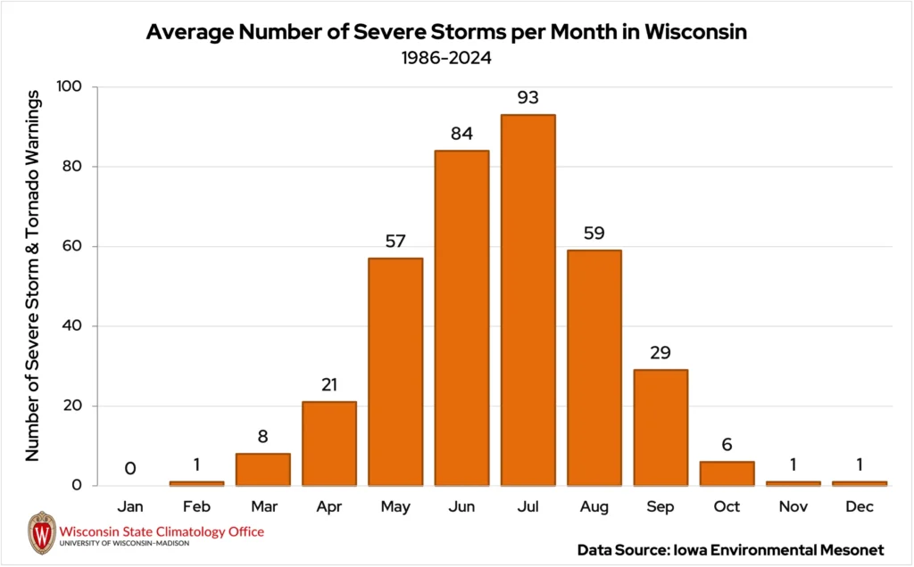 As temperatures warm through the season, thunderstorms begin to develop more frequently. The threat of severe weather, such as hail, damaging winds, and tornadoes, grows as more energy builds in the warming atmosphere. As it’s usually the warmest of the three spring months, May has historically been the most active for severe weather.