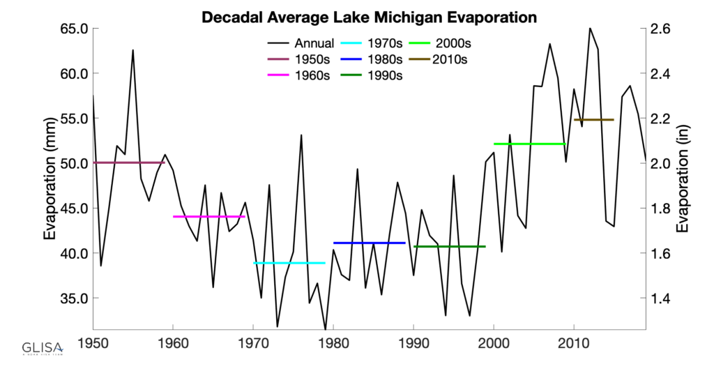 - A shorter duration of ice cover on the Great Lakes leads to increased evaporation of lake water to the atmosphere, which in the absence of increasing precipitation would decrease lake levels.