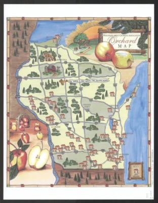 Wisconsin has several clusters of apple-growing regions that have developed due to family history, microclimates, topography, soil type, market location, or land availability.