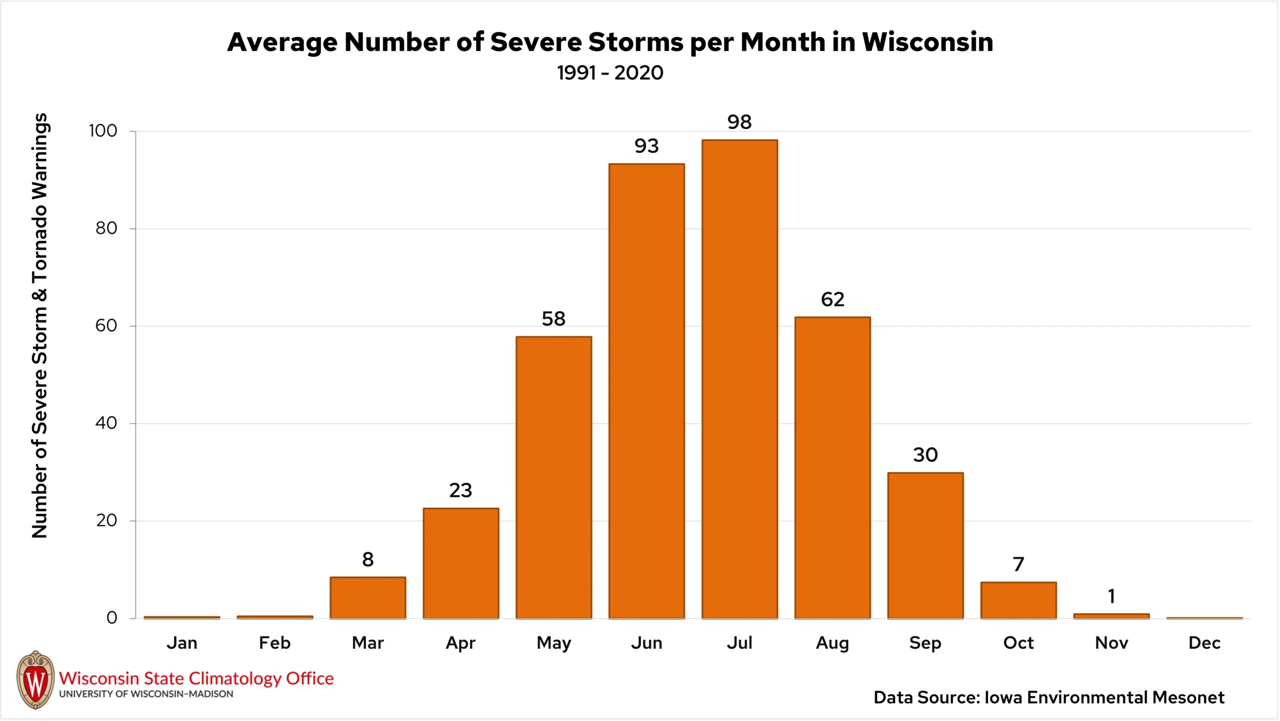 Wisconsin’s severe weather season typically begins in late spring and peaks in June and July. However, severe storms can develop at any time, so it’s important to always be prepared.